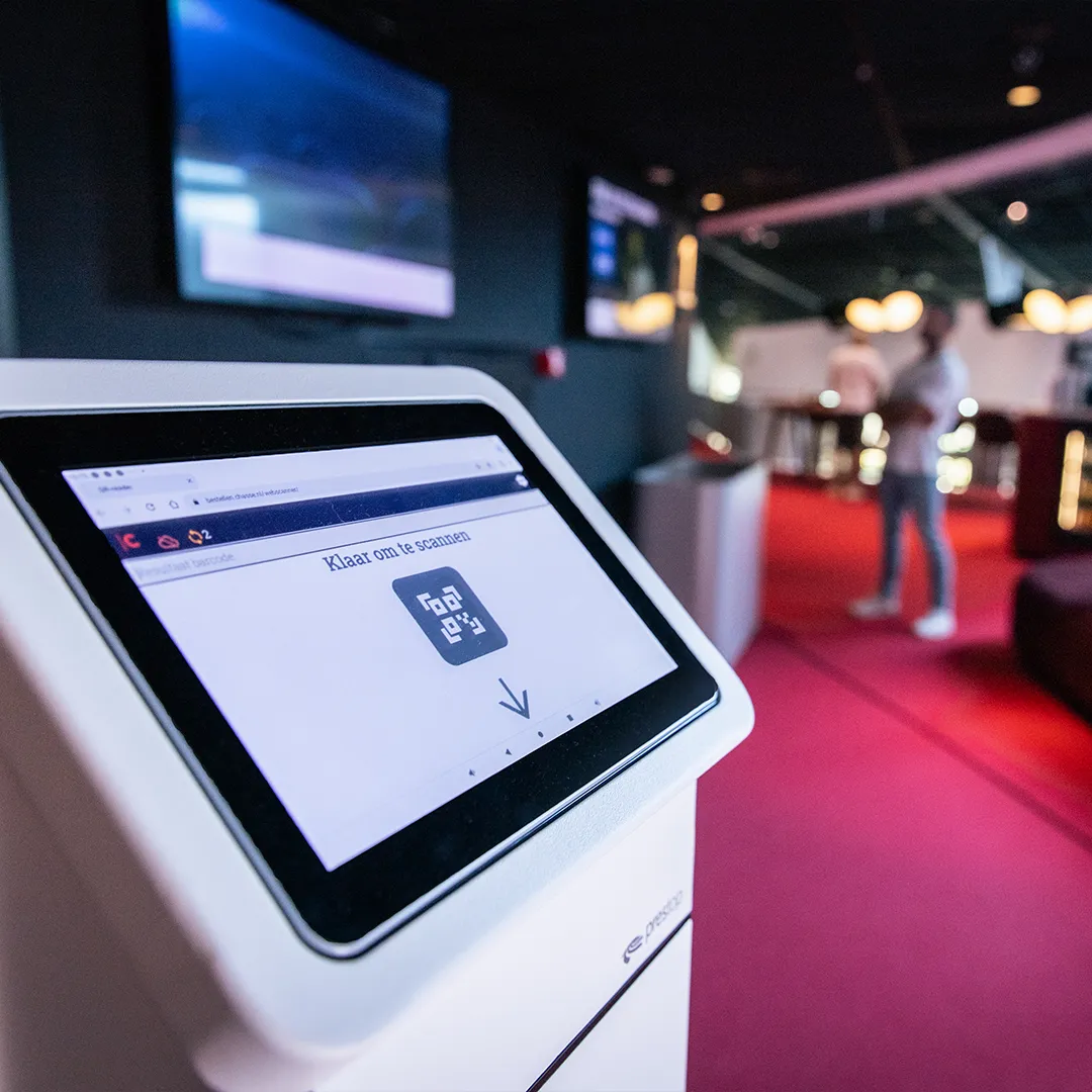 The registration kiosk makes it possible for visitors to register themselves. These kiosks can be expanded with RFID readers and barcode scanners, whether or not linked to a database.
