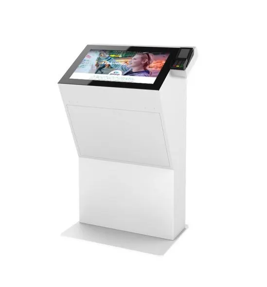 Equipped with a Full HD touchscreen in portrait and payment terminal holder.