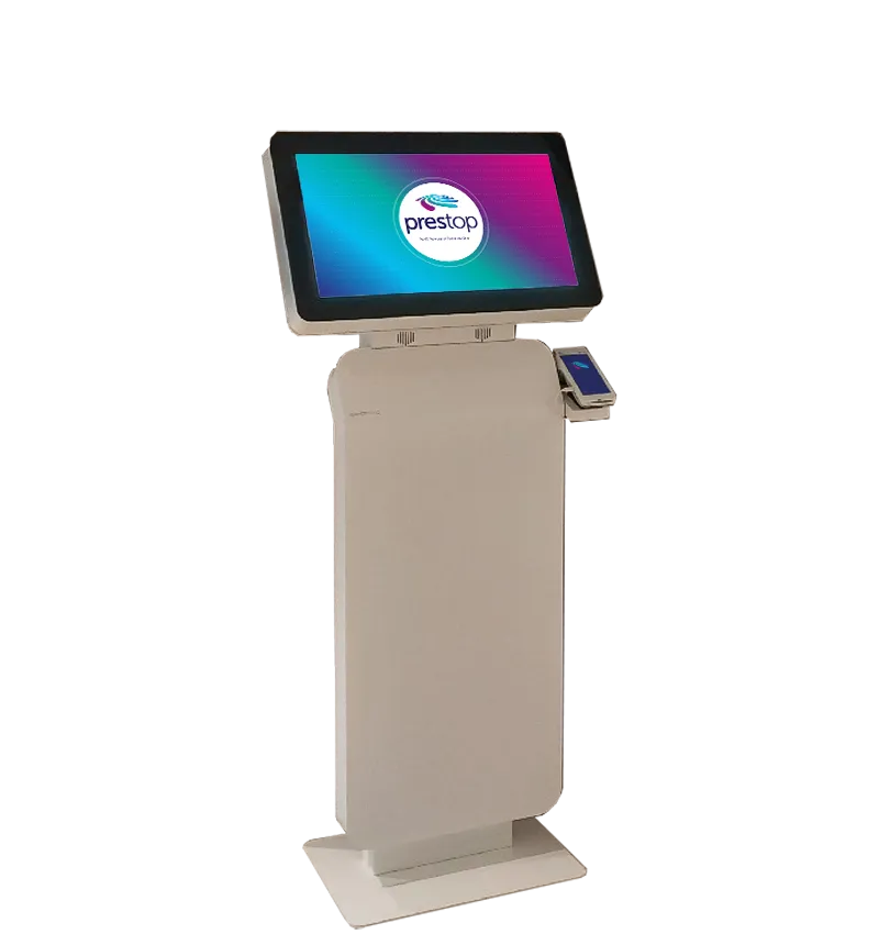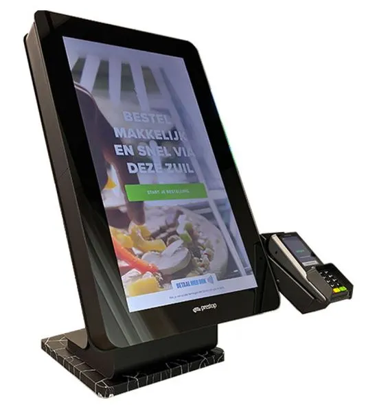 Prestop's eye catching order kiosk is now for sale as an occasion. Equipped with a Full HD touchscreen in landscape. 4 mm tempered glass at the front, consisting of one part and therefore easy to keep clean.